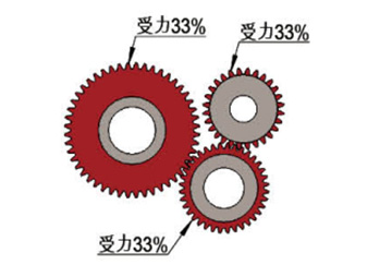 ![]() | 目前市面上30比以下減速機常用的減速方式。此款減速機用在受力均勻的傳動中沒有問題。但是計量泵是單點沖擊受力,所以對軸承與齒輪的要求比較高。如果是兩段減速,軸承與齒輪各受力50% |