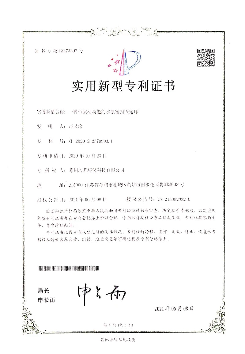 一種帶驅(qū)動功能的水泵密封固定環(huán)