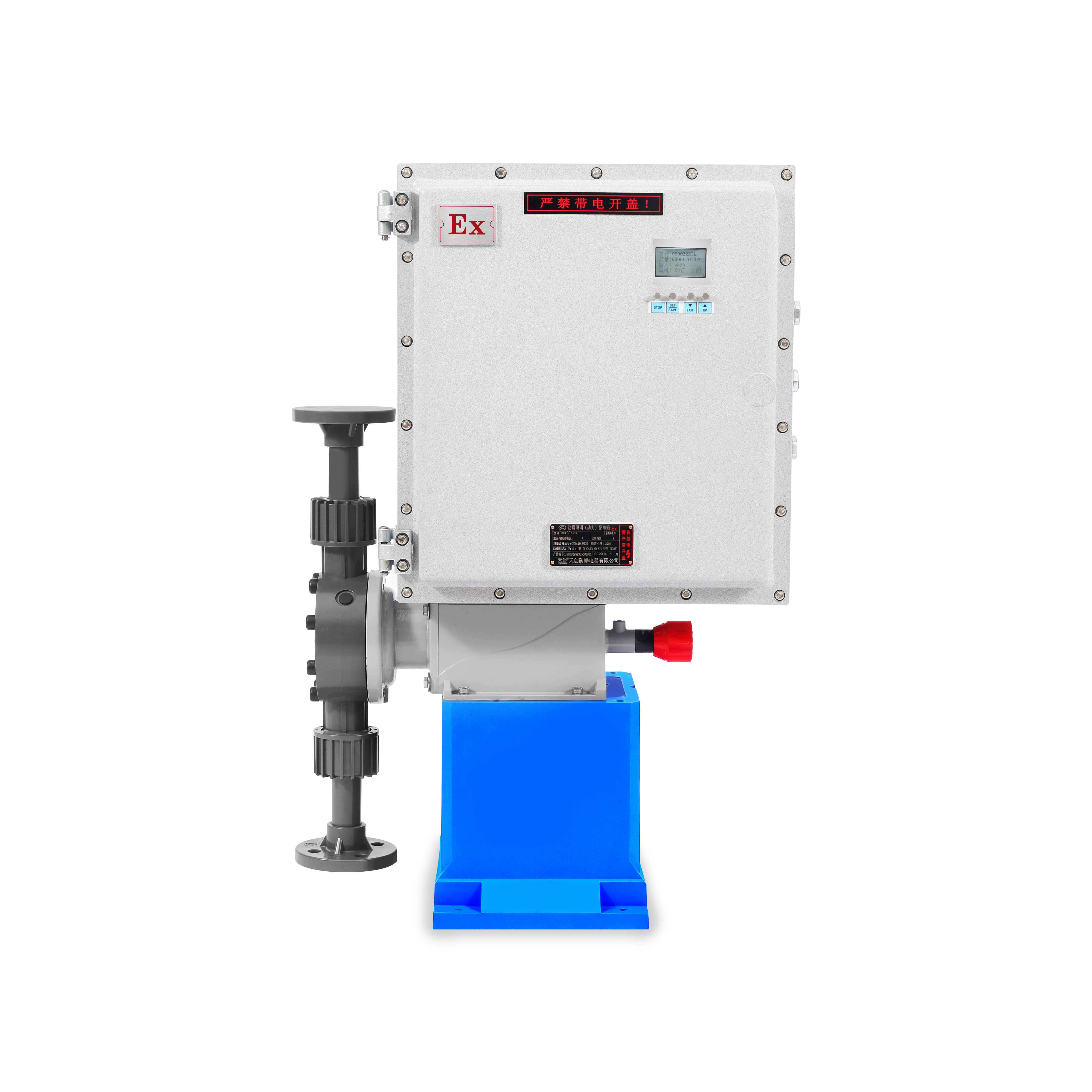防爆數(shù)字泵 自主研發(fā)的的智能型KHF系列數(shù)字計(jì)量泵,為客戶提供化學(xué)品精確投加智能解決方案。數(shù)字計(jì)量泵機(jī)械結(jié)構(gòu)簡單,安裝維護(hù)方便,獨(dú)特的驅(qū)動(dòng)設(shè)計(jì),使得流量控制簡單又精確。泵融合多種智能設(shè)計(jì)于一身,結(jié)合流量、液位、壓力、時(shí)間等方面予以控制,通過集成的微處理器予以自動(dòng)化運(yùn)算和反饋,友好的按鍵式人機(jī)界面系統(tǒng)讓操作更便利化。 | ZS系列柱塞泵 產(chǎn)品亮點(diǎn): 1.一體式前蓋,20秒即可拆卸進(jìn)出口接頭,方便快捷; 2.軸封填料自動(dòng)張緊,可根據(jù)填料磨損程序自動(dòng)加壓,自動(dòng)補(bǔ)償,防止泄露; 3.精鑄的偏心結(jié)構(gòu),無需彈簧回位,采用機(jī)械強(qiáng)行回位,減少電機(jī)損耗; 4.對(duì)于粘稠度較濃的藥液,流量也不會(huì)有損失。 |