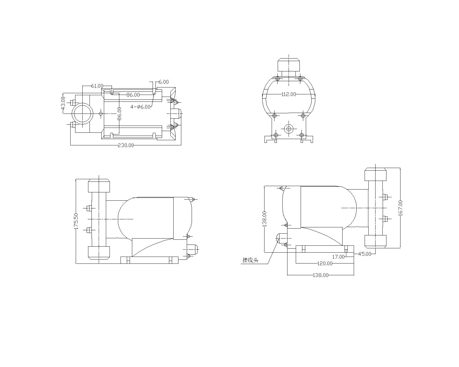 型號(hào) | 出口壓力 | 流量 | 膜片直徑 | 電機(jī)功率 | 重量 | 連接方式 | ||