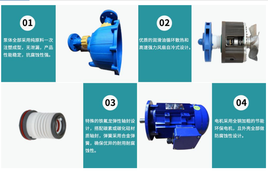 5、高強度雙碳化硅機封,停機不吸合;